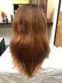 ダメージレベル★★★★ クセ☆☆☆ ハイカラーを繰り返し続けた事により髪が乾燥気味でパサツキやすく褪色もしてしまっている髪の毛にアミノ酸含有の液晶トリートメントで艶やかにしました。