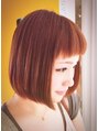 自然なボブです♪カラーは流行のオレンジ系をチョイスしました!アクセントは前髪、短く切っておしゃれ度アップです☆