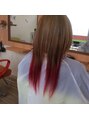 全体をブリーチして毛先にピンクを、トップはアッシュ系カラーを入れて^ ^