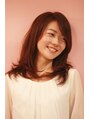 ミディアムボブ。重めのスタイルだけど、量感での軽さを入れることでナチュラルな動きを演出!!前髪を流すことで大人スタイルに。