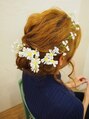 花冠をつけたような控えめ小花がキュートなアップスタイル