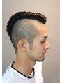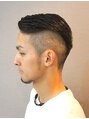 大胆に2ミリで刈込んだツーブロック。片側をさらに1ミリで刈込み、その上にラインを入れてます。かなりオシャレなツーブロックです!オシャレボウズや七三スタイルに飽きた人におすすめ!アップバング。