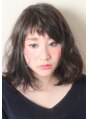 人気のロブヘアにやわらかふんわりウェーブ☆前髪も眉上ふんわりでかわいい☆カラーはオレンジベージュ☆