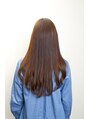 美髪ロングヘアー。その中でもバックスタイルが綺麗に見える様に、すそがVラインに作られています。背中が小さく細く見え、また胸側に下ろした毛束が重くなりすぎず、軽やかさを演出してくれます。骨格のお悩みも解消できるお薦めのロングスタイルです
