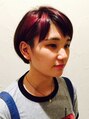 ワンポイント紫を入れたおしゃれショート!前髪も短く、サイド刈り上げて耳かけがかわいいい!攻めてる女子に合うスタイル!