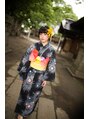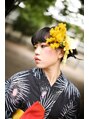 学生さんでも浴衣アレンジ♪帯や飾り個性的なアレンジを加えて撮影しました。顔の雰囲気に合わせてヘアアレンジすることが重要ですね。編み込みで左右にくるくる巻きつけています。メイクはアイラインを大胆にオレンジを使用。*メイク&ヘア&カメラ:原子