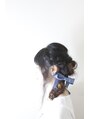 今、巷で人気の「くるりんぱ」を取り入れたアレンジスタイルです。モデルさんは、襟足部分にハイトーンのポイントカラーを施しているので、全体を編み込むことにより、色のコントラストが引き立つように仕上げてあります。