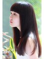 【個人ブログはトラヴィス 松下で検索】広がりを抑えるために、段もあまり入れずにカットしました。そうすることで、艶やかに仕上がります。毛先は少し動きがでるように、アイロンでスタイリング。重たい印象になりすぎないように、短めバングがオススメです