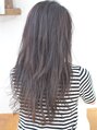 <カット>ローレイヤーのロングベースです。毛先はスライドカットで軽さを出します。全体的に量感を減らし、前髪センターで分けました。<カラー>6トーンのブラウンベージュで艶をだしました。