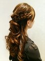 結婚式やパーティーのヘアセットです!くるりんぱと編みこみの合わせハーフアップになっております。飾りをつけなくても華やかに見えるので、オススメです♪ロングヘアだけでなく、ある程度の短めの髪でも応用できます☆(アップセット\3780/時間外要相談)