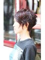 前下りショートボブにパーマで動きを。ボリューム感も出ますし、アクティブなイメージに。ポイントはメリハリですね。前髪の短いところから長くなっていくところ、サイドの長さやネープ(襟足)のしまったシルエットなど。*新潟市プレミアム商品券使えます