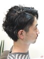 サイドを刈り上げてあり、髪を耳にかければエッジの効いたパーマスタイルになります。襟足も短くし後ろから見てもスッキリとし好感度もUP!パ-マのかけ方でどの顔型・髪質にも似合わせる事ができます。個性をだしたい方にお勧めです。