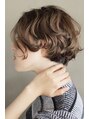 外ハネをミックスした少し前下がりのウェービーボブ。センターパート、サイドパートで抜け感のあるスタイルです