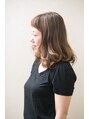 前髪も短く、キュートなミディアムスタイルです。全体にちりばめたハイライトでさらに柔らかく。