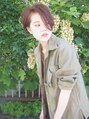 カジュアルにもモードにもきまるショートです。フロントを前下りにカット。メンズライクな洋服を着ても色っぽいショートヘアー。カラーは透明感のあるベージュブラウンで。または黒髪でもかっこ良くなります!!