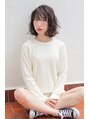 重ためのワンレンボブにカット。パーマor巻き髪で無造作感を出して暗めのアッシュカラーをON!