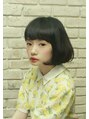 ナチュラルなボブ。頭の形がキレイに見えるように表面にレイヤーを。モードっぽさもありつつ短いバングで可愛らしさを。