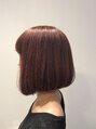 重め前下がりボブ☆前髪厚めに持ってきてるので印象が柔らかく、スタイリッシュに!!カラーはチェリーレッドで愛らしく、よりツヤ感重視(^^)/