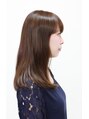 コテで毛先ワンカール巻いたセミロングスタイルです。カラーはアッシュブラウンで透明感と軽さを出しています。