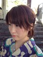 浴衣に似合うようにゆるくルーズにねじってUPしました。「長い前髪をどうしようかな?」とお悩みの方にオススメ☆気軽にできて、可愛くなれるヘアセットです。