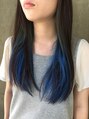 鮮やかなネイビーが目を引く インナーブリーチ&マニックパニック!単調になりやすいストレートロングもインパクトヘアに。 普通のカラーに飽きた方にオススメ!アップスタイルやアレンジヘアも印象が変わるから毎日のスタイリングが楽しみに!