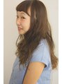 重く見えないよう、顔周りにレイヤーを入れ、大き目のカールで毛先にランダムな動きをつけました。ふんわりとした質感を出す為、カラーは柔らかなブラウンに、デザインカラーのハイライトで、より毛先に軽やかさを。