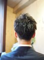 2ブロックに上げても下ろしてもイケちゃう長さの前髪でさらにパーマの動きで軽さをプラス!涼しげに前髪を上げて爽やかスタイル♪