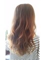 ナチュラルな巻き髪ロングヘアにハイライトとローライトで立体感をプラス