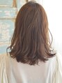 鎖骨ラインのミディアムベースです。トップは動きが出やすい様にレイヤーで動きを出します。全体的に量感を減らし、前髪は目の上ラインでカットしサイドに繋げます。7トーンのショコラベージュです。ベースをベージュにする事により柔らかさを出しました。