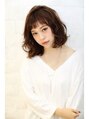 片上のボブスタイル。重いベースに軽さわ加えた抜け感スタイル。顔周りをリバースウエーブにすることで、小顔効果。無造作でラフな仕上がりが好きな方におススメです。【上田】