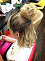 おだんごハーフアップで-す。シンプルですが目立ち度はバツグンです(^^)/髪が短いボブの方でもハーフアップにすれば無理なくできますよ~キッチリしするより今回のようなランダムなおだんごが可愛いですね~( *´艸`)イベントなどにいかがでしょうか~☆☆☆