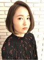 作り込みすぎない、ナチュラルロングやや前上がりのワンレンベースの表面のみにレイヤーアウトラインの毛先には、あえてブラント感をのこして、パサつきのない質感にハニーカラーで、ハイトーンにも、艶と輝きを