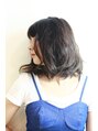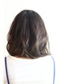 落ちついた暗めの7トーンのブルーアッシュで、ハチ上に段をつけることで重さを残しつつ軽い動きがでるようにカットしています。