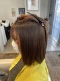 ブリーチした毛先にもかけることが出来る、低ダメージのナチュラルストレートパーマです。ボリュームを抑えて自然にまとまります。