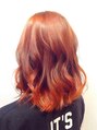 オータムカラー始めました☆アプリコットオレンジで赤みある秋らしいお色に☆ボブディな長さはランダムカールに仕上げてノームコアな自然さをプラス!