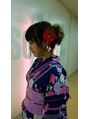 編み込みをしたサイドアップです。毛先のカールを出しながら小さくまとめて、髪飾りをつけました。