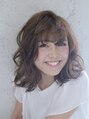 肩下のミディアムスタイル。トップからの無造作に動くウェーブが、スタイルのぬけ感や無防備な可愛さを表現。前髪は甘くなり過ぎないように、長めのうざバングで!