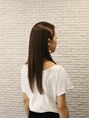 艶感あるアッシュベージュで染めた艶さらストレートスタイル