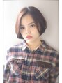 肩上の外ハネボブ 暗めの色でも外ハネにすることによって軽い印象になります☆色は一度ブリーチしてダークアッシュをかぶせてます。ブリーチ毛にカラーを暗く入れることにより透け感と色落ちを楽しめるスタイルです^^