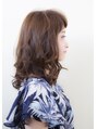 つくり込み過ぎないふんわりウェーブと眉上バングのバランスがポイントです。動きとボリュームの出やすいスタイルです。