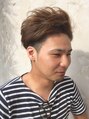 サイドは涼しく刈り上げて、パーマをいかしてトップは長めにしました。カラーは明るめのアッシュベージュに少しくすみ感も足しました。