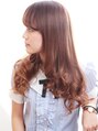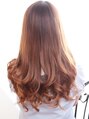 明るめのナチュラルベージュと毛先にかけたウェーブが軽さと動きを出してくれます。斜めバングにして柔らかい雰囲気わ出しました。