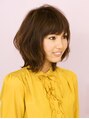 すっきりとした前髪とサイドバックのふんわりウェーブがかわいらしさをUPさせる。レイヤーボブスタイル。襟足の髪を軽くはねるような感じでまとめ軽さを強調しました。カラーは魅惑のカラー。チェスナッツブラウンで甘さを強調。パーマはエアパーマ