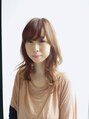 カットはセミロングにレイヤーを入れ軽さを出してベージュカラーで柔らかい質感を出した甘めのスタイル。