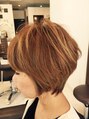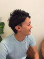 サイドにブロック入れて、全体を軽くし、トップのみ軽くパーマをかける