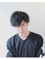 CカールとSカールをランダムに巻いたミックスパーマ。フロントまでゆるめの動きをつけてアンニュイな雰囲気系スタイルに。