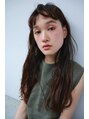 ウェットな質感と束感、ナチュラルなクセ感でこなれたロングスタイルに!バングも軽めな束感とショートバングでも自然なセンターパートで分けると可愛く決まります!