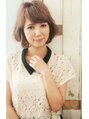ベースはショートボブでに丸みのある小顔スタイル!毛先にユルくパーマをかけてボリュームを出しつつ軽い動きを演出!耳かけアレンジでひし形を強調できるのもpoint!!