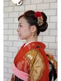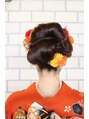 お着物の柄がかわいらしい古典的な柄でしたので、大正ロマン風な要素を少しとりいれたかんじにしてみました。