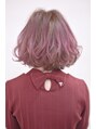 顎下の台形ボブを骨格補正カットで小顔に立体的にカットしてますので、セットも簡単にできます。パーマはトップからゆるいウェーブでかぶせてますのでエフォートレスな風合いに仕上がってます。カラーにピンクのアクセントを入れて遊び心くすぐりますね。